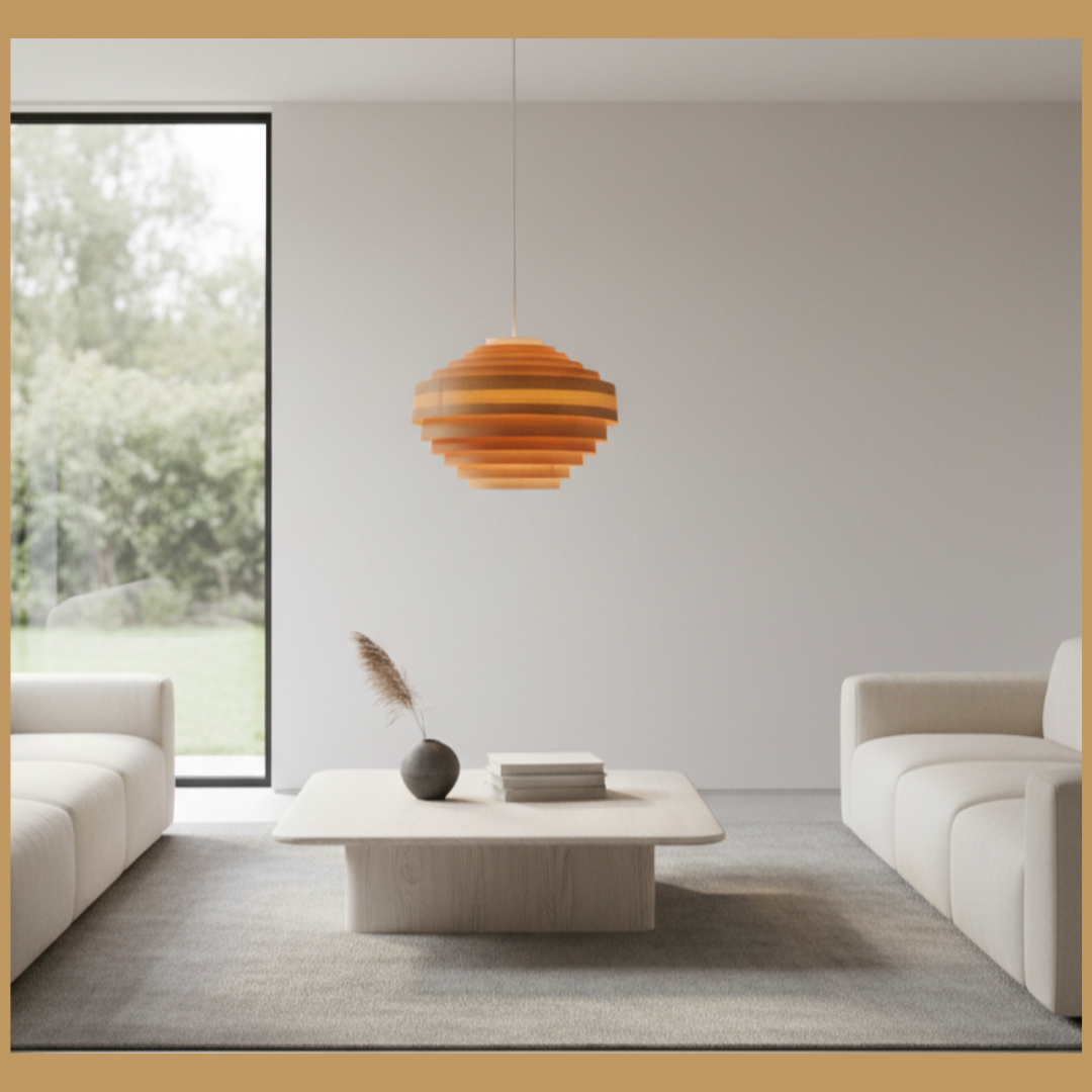 Jako es una pieza decorativa que combina elegancia, calidez y minimalismo en una sola forma. Su estructura de capas en madera natural crea un efecto de luz envolvente que transforma cualquier ambiente en un espacio acogedor y sofisticado.