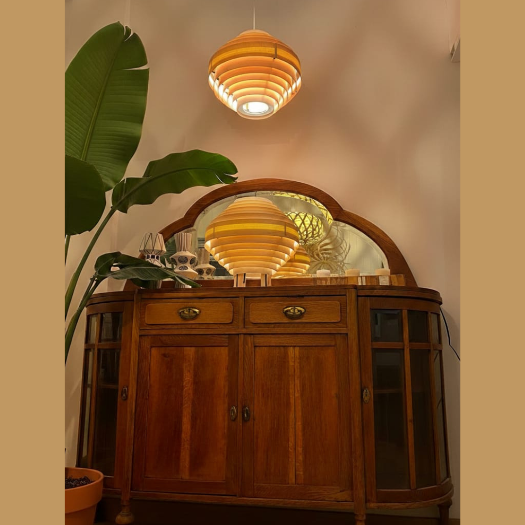 Gracias a la disposición de sus láminas de madera, la luz se difunde suavemente creando una atmósfera relajante y confortable en cualquier espacio